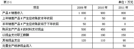 【例1】甲公司管理层2008年年末批准的财务预算中与产品W生产线预计未来现金流量有关的资料如表2-1所示(有关现金流量均发生于年末,各年末不存在与产品W相关的存货,收入、支出均不含增值税):