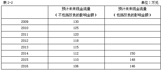 在2008年末计算该资产未来现金流量的现值时,应该以不包括资产改良影响金额的未来现金流量为基础加以计算。具体如表2-3所示。