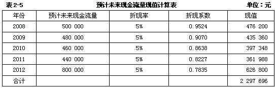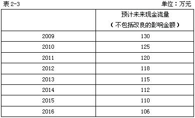 为了计算该固定资产在2008年末未来现金流量的现值,公司首先必须预计其未来现金流量。假定公司管理层批准的2008年末的该固定资产未来现金流量如表2-2所示。