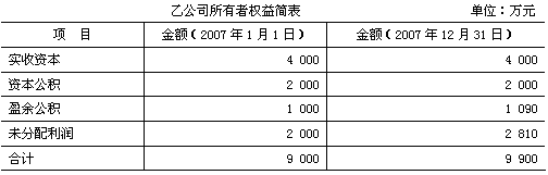 ③乙公司2007年实现净利润900万元,除实现净利润外,未发生其他影响所有者权益变动的交易或事项,当年度也未向投资者分配利润。2007年12月31日所有者权益总额为9 900万元(见乙公司所有者权益简表)。