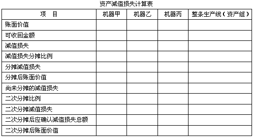 该题是资产组减值的会计处理,综合性较强。该题涉及资产组的确定;未来现金流量的计算;可收回金额的计算;填列资产组减值测试表,将资产组减值损失分摊到各单项资产时应注意:抵减后的各资产的账面价值不得低于以下三者之中最高者:该资产的公允价值减去处置费用后的净额(如可确定的)、该资产预计未来现金流量的现值(如可确定的)和零。因此而导致的未能分摊的减值损失金额,应当按照相关资产组或者资产组组合中其他各项资产的账面价值所占比重进行分摊;编制计提资产减值准备的会计分录等内容。