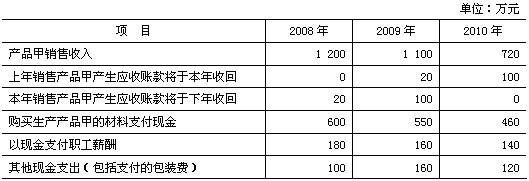 ②长江公司管理层2007年年末批准的财务预算中与产品甲生产线预计未来现金流量有关的资料如下表所示(有关现金流量均发生于年末,各年末不存在与产品甲相关的存货,收入、支出均不含增值税):